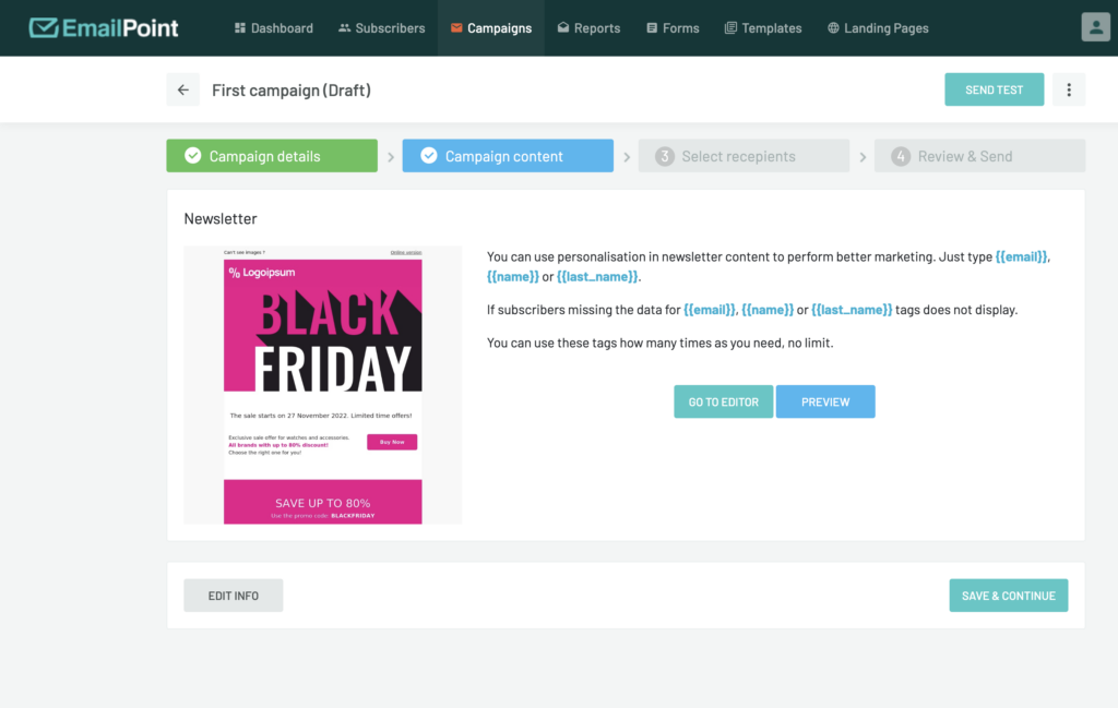 Welcome to EmailPoint! Get started by creating your first campaign. Here are the simple steps you need to follow: