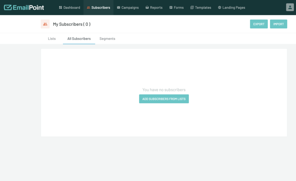 - To create your first Subscribers list, click “Add lists and subscribers from lists”.