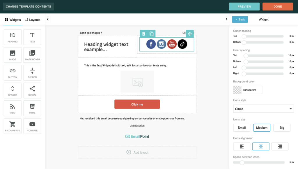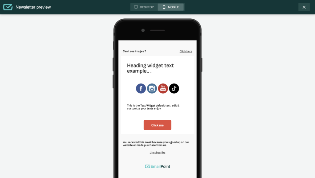 1. Use the Drag & Drop Editor: EmailPoint’s intuitive editor allows you to add various elements: